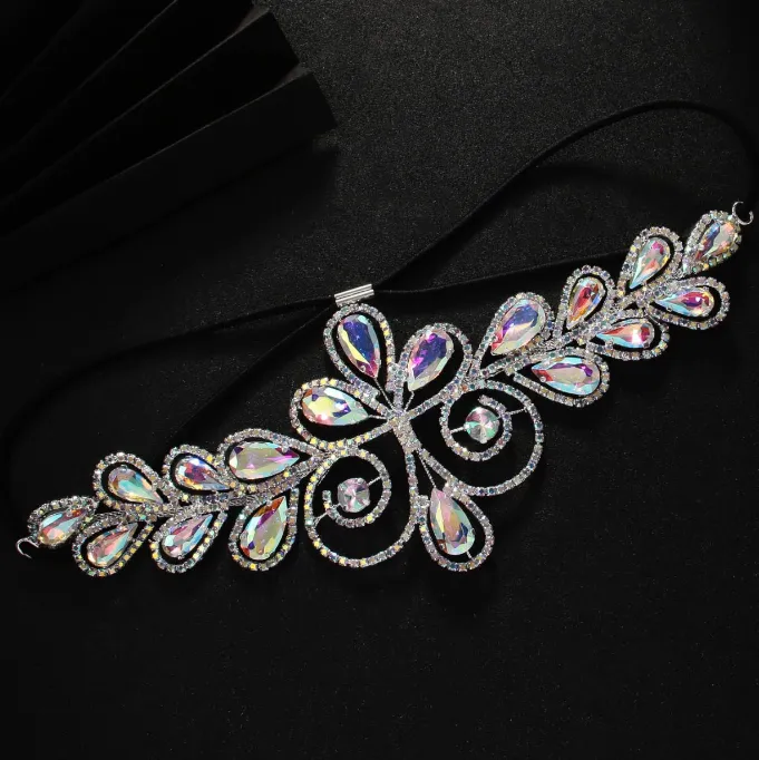 Plastic Crystals Crystal Flower Patches Costume Trims Iron-on Rhinestones diy costume accessories crystal embellishment carnival supplies Gold & Silver Fringe DIY Garment Accessories Festival Costumes