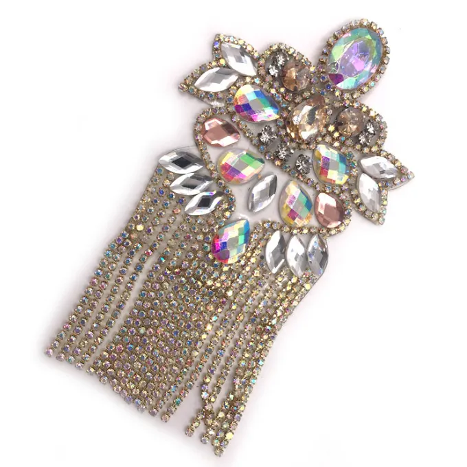 Plastic Crystals Crystal Flower Patches Costume Trims Iron-on Rhinestones diy costume accessories crystal embellishment carnival supplies Gold & Silver Fringe DIY Garment Accessories Festival Costumes