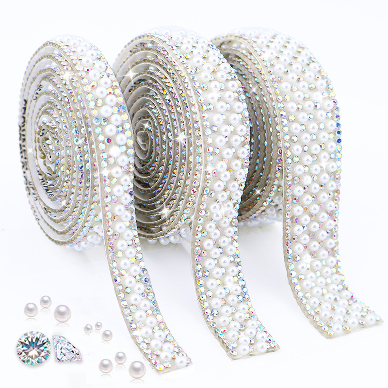 1cm, 1.5 cm and 2cm wide white pearl+clear AB stone.